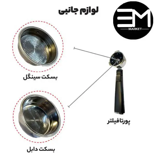 تمپر قهوه، تولید کف شیر، سیستم گرم کردن فنجان، سینی چکه گیر، نازل بخار |